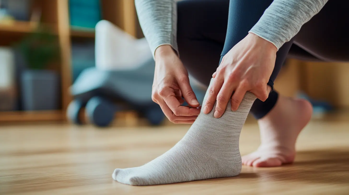 Si usas medias de compresión, puedes aplicar un poco de polvo de talco en el pie para facilitar el deslizamiento.